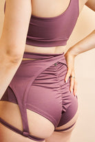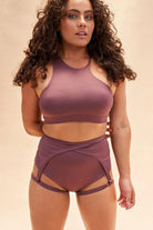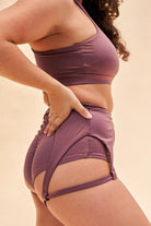 Lunalae Iris Crossover High Waisted Garter Shorts - Elderberry