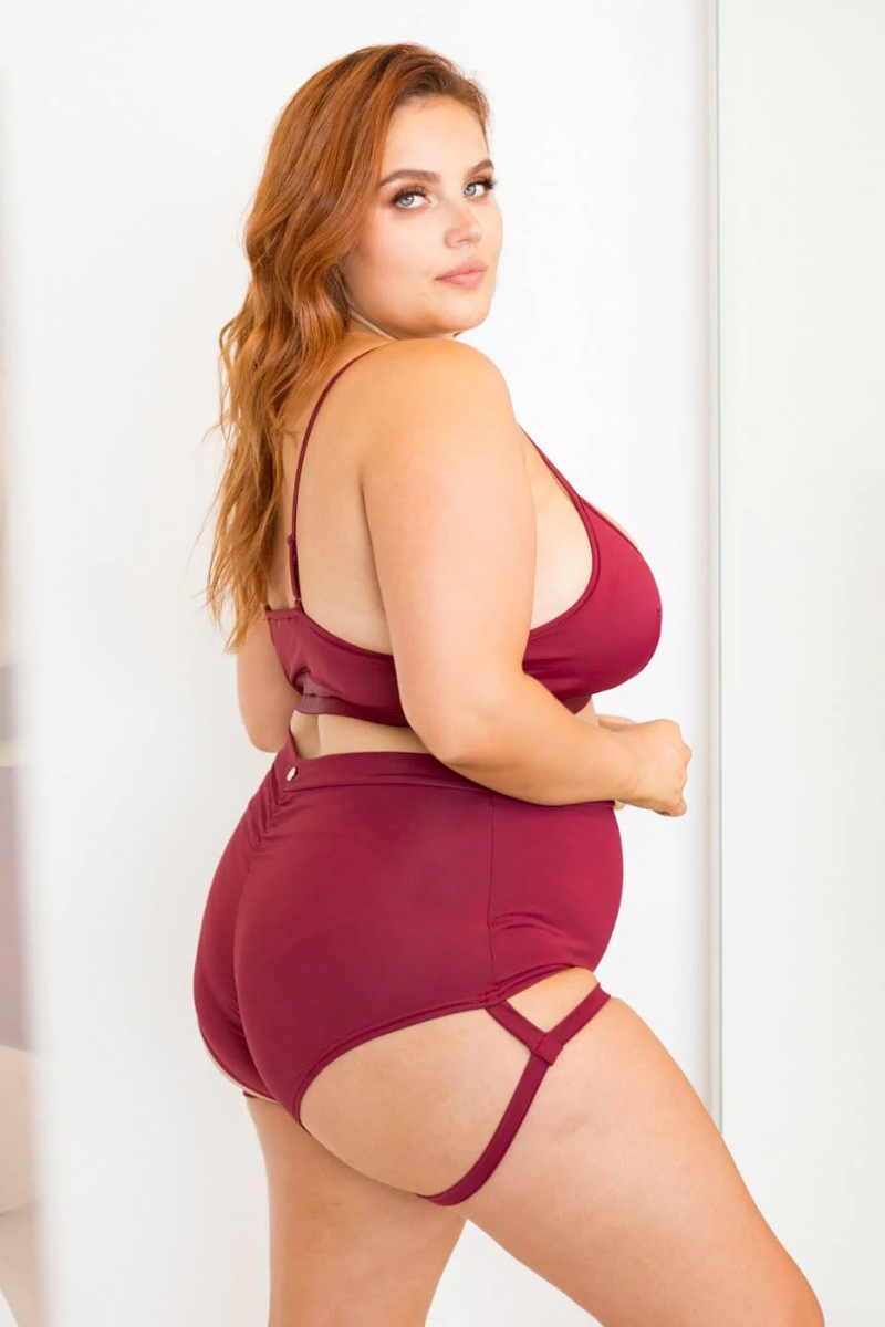 Lunalae Lure You High Waisted Garter Shorts - Wine
