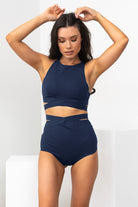 • Gold Luna logo on back | Scrunch bum | High Waisted | Full Coverage | Elastic Criss-Cross Waistband