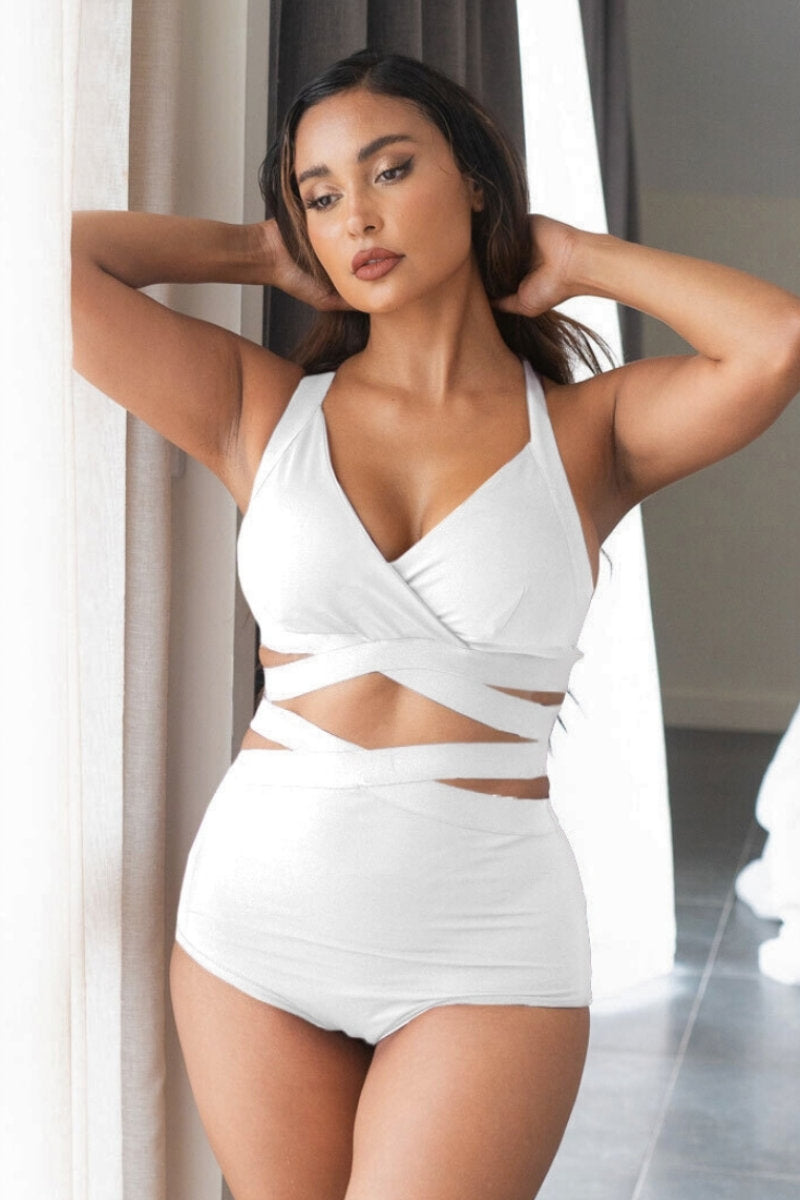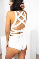 A divine style, reimagined. Lunalae's cult classic hot pants now come in a high-waisted fit, reborn in crisp, clean white. Flattering hip garters and cute cut-outs meet a signature scrunch bum to sculpt and celebrate your form. Finished with our iconic Luna logo for an angelic touch.