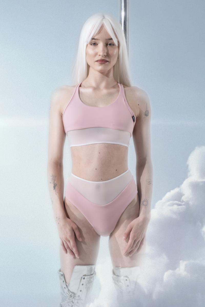 The sculptural Lycra contours and accentuates every curve. Strategic mesh panels offers breathability, flexibility, and a sense of ease without compromising the boldness. The body is not disrupted. It’s amplified.