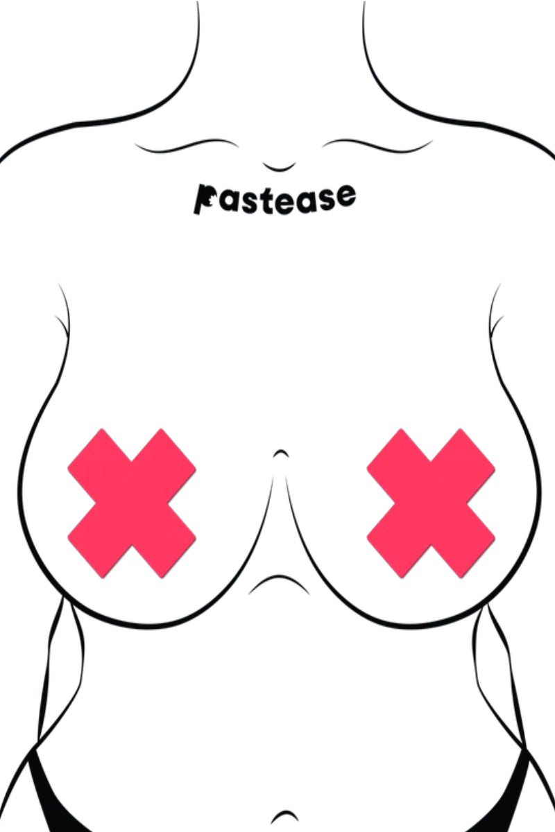 Introducing the Pastease Glow in the Dark Cross Nipple Pasties in Neon Pink