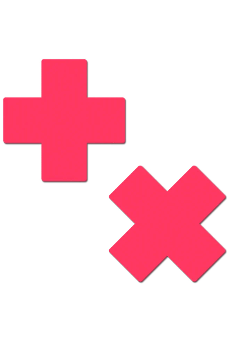 Pastease Glow in the Dark Cross Nipple Pasties - Neon Pink