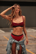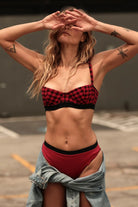 Wrap yourself in a checkered pattern with its square neckline and half cup detail. Adjustable straps and elastic band keep you ready for any wild race. Drive your style with seductive confidence and claim pole position with every move!