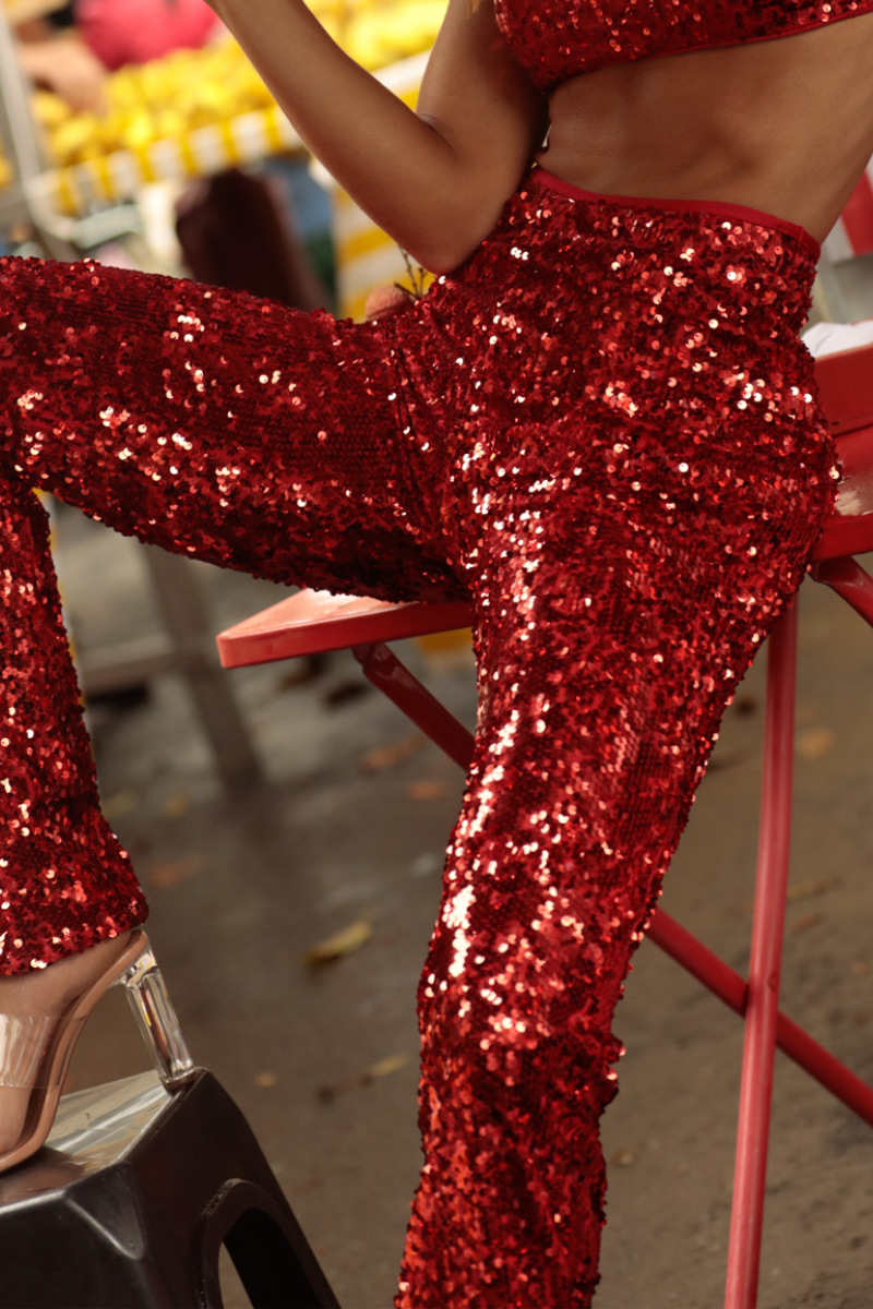All that glitters is you. These high-waisted sequin trousers are made for making an entrance and leaving a lasting impression. Offering full coverage for a sleek silhouette, they move seamlessly from the pole to the afterparty. Your disco-ball fantasy, realised.