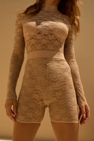 Blur the lines between lingerie and streetwear. From Rolling's Future Nostalgia collection, these sheer lace bumper shorts are a futuristic fantasy. The high-waisted fit and thick, supportive waistband create a sleek silhouette, perfect for layering over your favourite bodysuit or wearing alone if you dare.