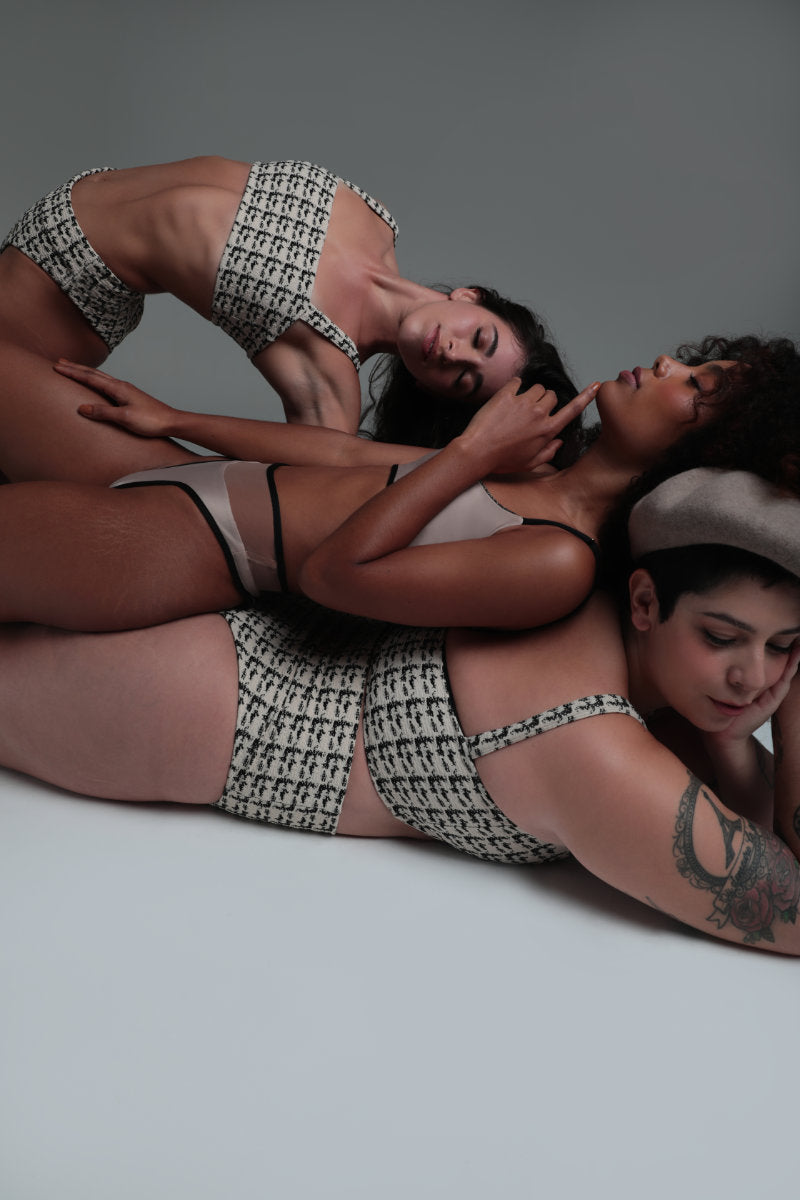 We are OBSESSED with this on trend tweed set from Rolling. This preppy bandeau style top in jacquard knit fabric is definitely an AW22 must have.