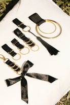 A captivating blend of elegance and allure, this bottom harness accessory set dazzles with gold hardware, ribbons, bows, and tassels. Sultry details for a daring statement.