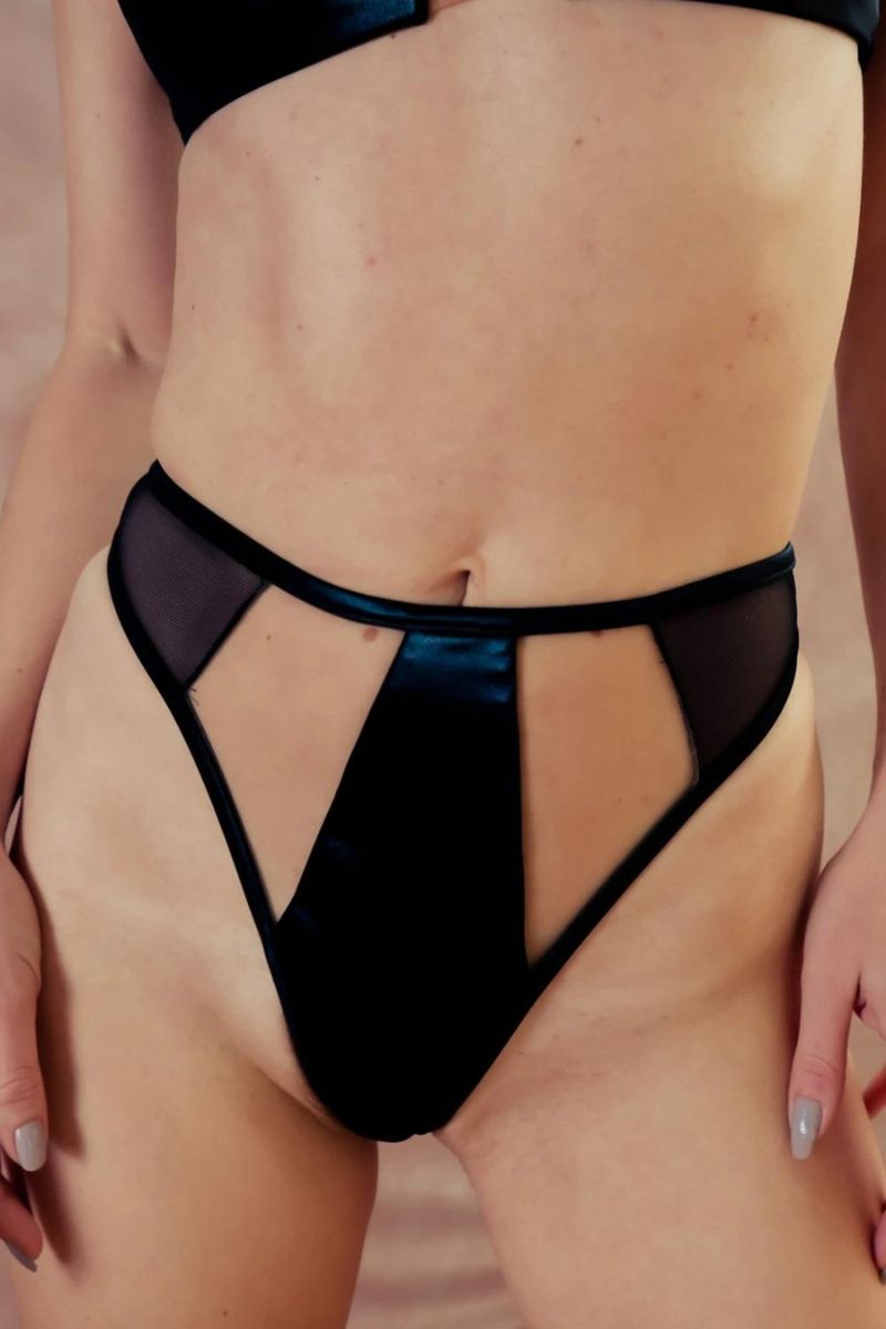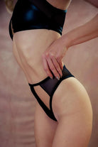 “You can’t stop me now”. 🎶🎶 With its lustrous black Wet Look fabric, high-cut legs, and cheeky coverage, these cheeky shorts exude power and confidence. Mesh panels and strategic cut-outs bring edgy sophistication, while back seam detailing enhances your curves.