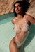 • Light Pink Tulle | With Pink and Gold Sequinned Cut Outs | Low Cut Delta Wing | G-String | Bare Back | Cheeky Coverage | Triangle Neckline