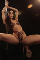 Shed your inhibitions! The Scorpio Bodysuit strikes in hypnotic reptile print. This cut-out masterpiece features mesh details that captivate, a high-leg silhouette that commands attention, and cheeky coverage with a minimalist back. Adjustable straps and a flattering scoop neck seal the deal. Your wildest transformation awaits. 🐍