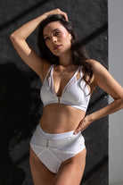 Styled with the Sofia Triangle Top in Matte White